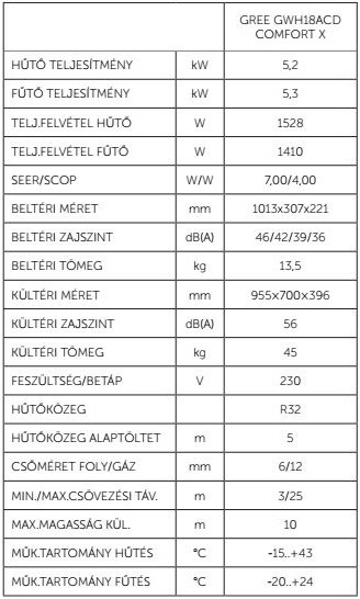 A Gree GWH18ACDXF-K6DNA1A Comfort X Inverteres Split klíma fontos tulajdonságai: